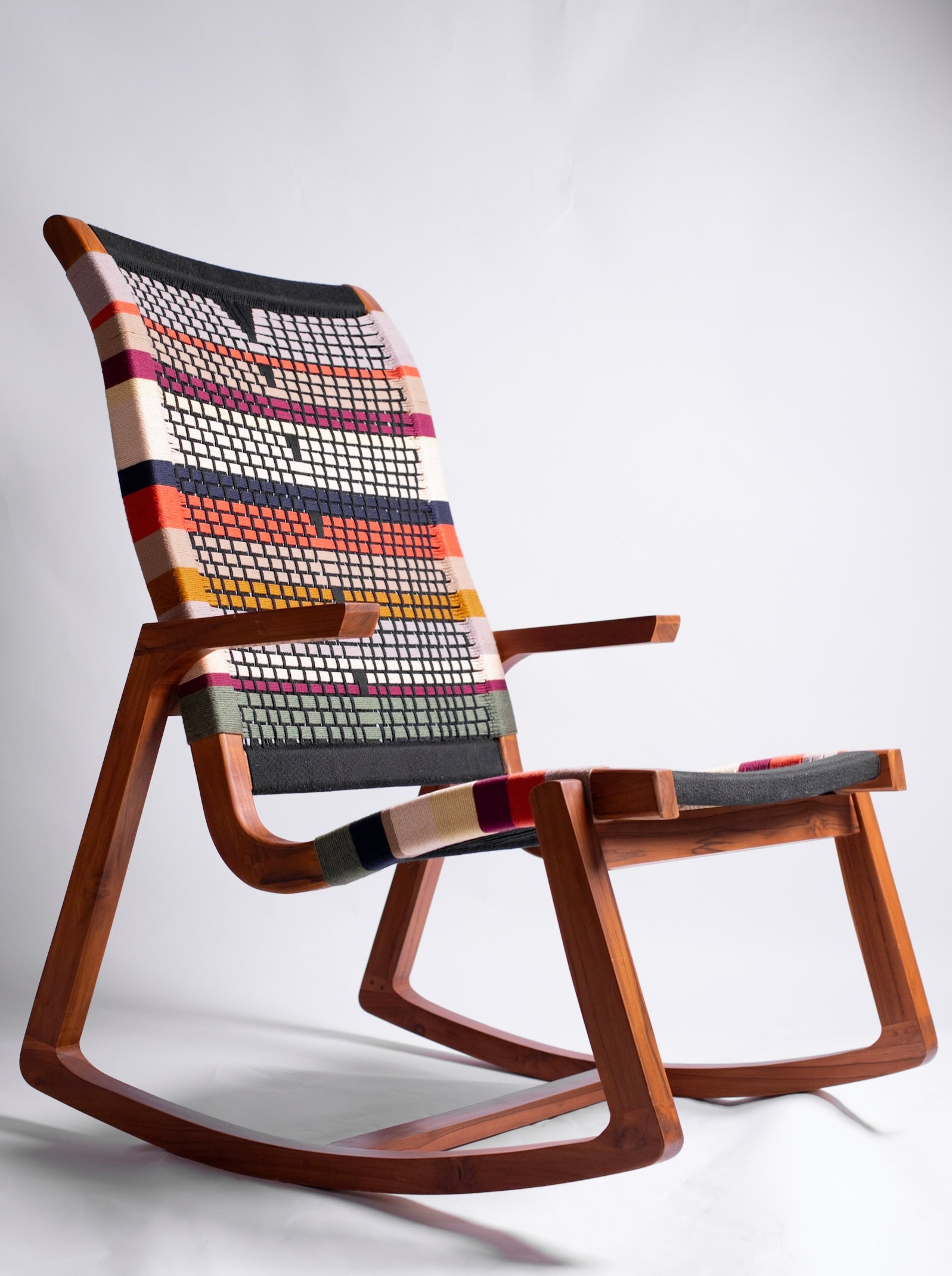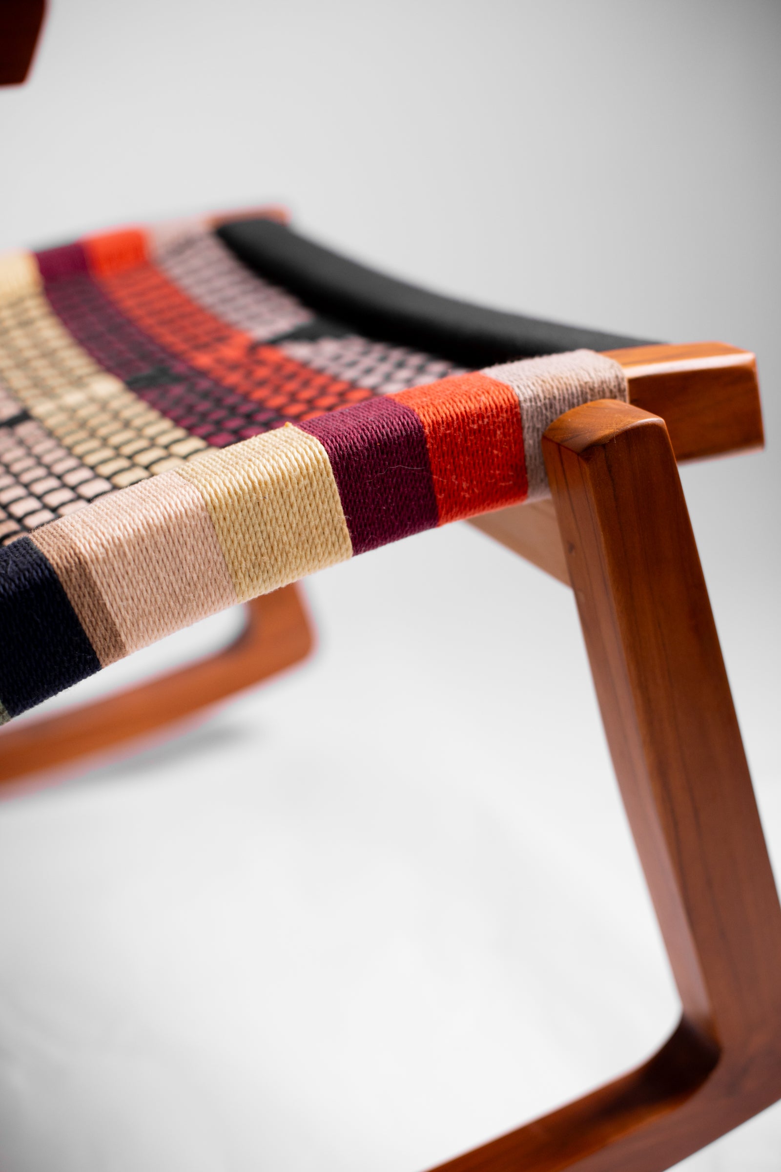 La Mecedora Monterosso te invita al descanso con su suave balanceo y un asiento y respaldo tejidos con esmero, presentando un patrón colorido que es una verdadera obra de arte. Su forma ha sido pensada para brindar un confort excepcional, convirtiéndola en el lugar ideal para leer, arrullar a un bebé o simplemente disfrutar de un momento de paz y tranquilidad.