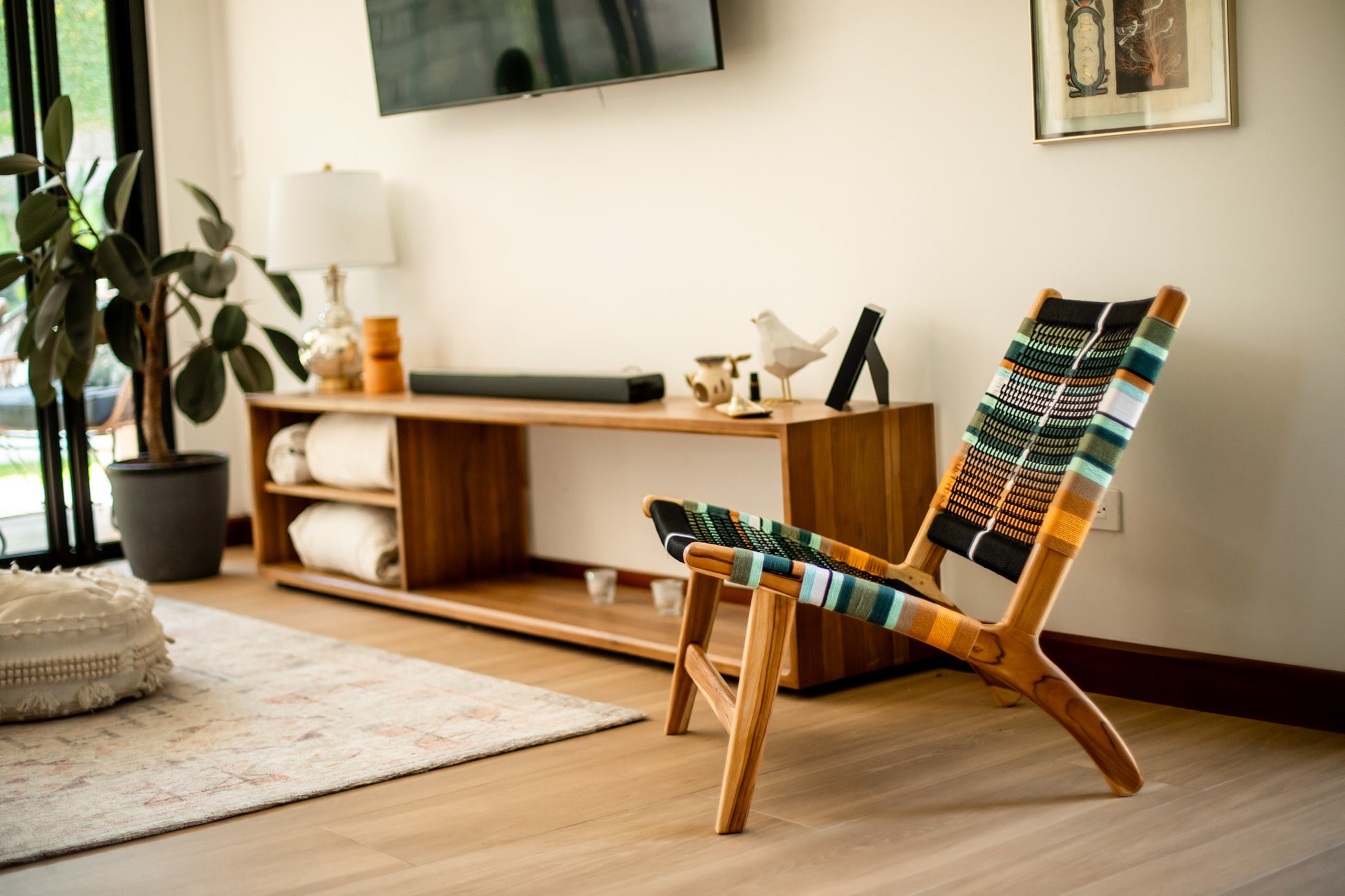 Pensado para ofrecer el máximo confort, su estructura ergonómica te invita a disfrutar de largos momentos de lectura, una buena conversación o simplemente a desconectar. El vibrante tejido del asiento no solo aporta un toque de color y textura, sino que también refleja un cuidadoso trabajo artesanal, haciendo de cada sillón una obra de arte funcional.